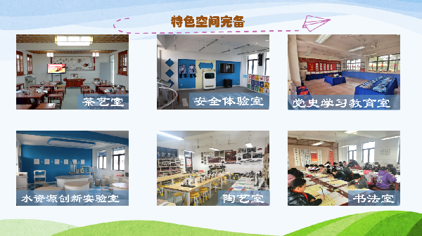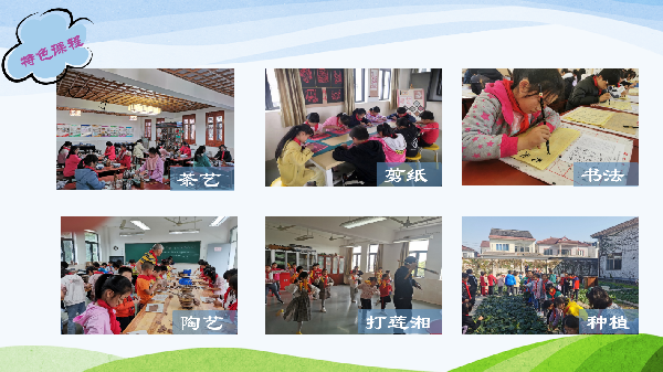 商榻小学在探索国家课程的校本化实施同时,依托商榻地区“一湖一茶”的优质乡土资源,挖掘江南水乡地域文化内涵,创新校本课程的特色化建设,先后开发了阿婆茶、打莲湘、陶艺、国画、书法、剪纸等特色课程,配备相应的学习空间,以此丰富学生学习经历,激发学习兴趣,激活学生的好奇心与探究力。