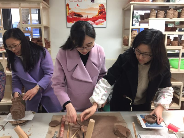3月7日中午,学校工会组织全体女教职工开展了“陶韵悠悠”——陶艺欣赏与制作活动。虽然天气还没转暖,但女教职工们却兴趣盎然。在学校专职陶艺老师的耐心指导下,老师们充分发挥艺术想象,用灵巧的双手制作出了一件件独具匠心的陶瓷作品,自信满满。整个陶艺教室充满了欢声笑语。